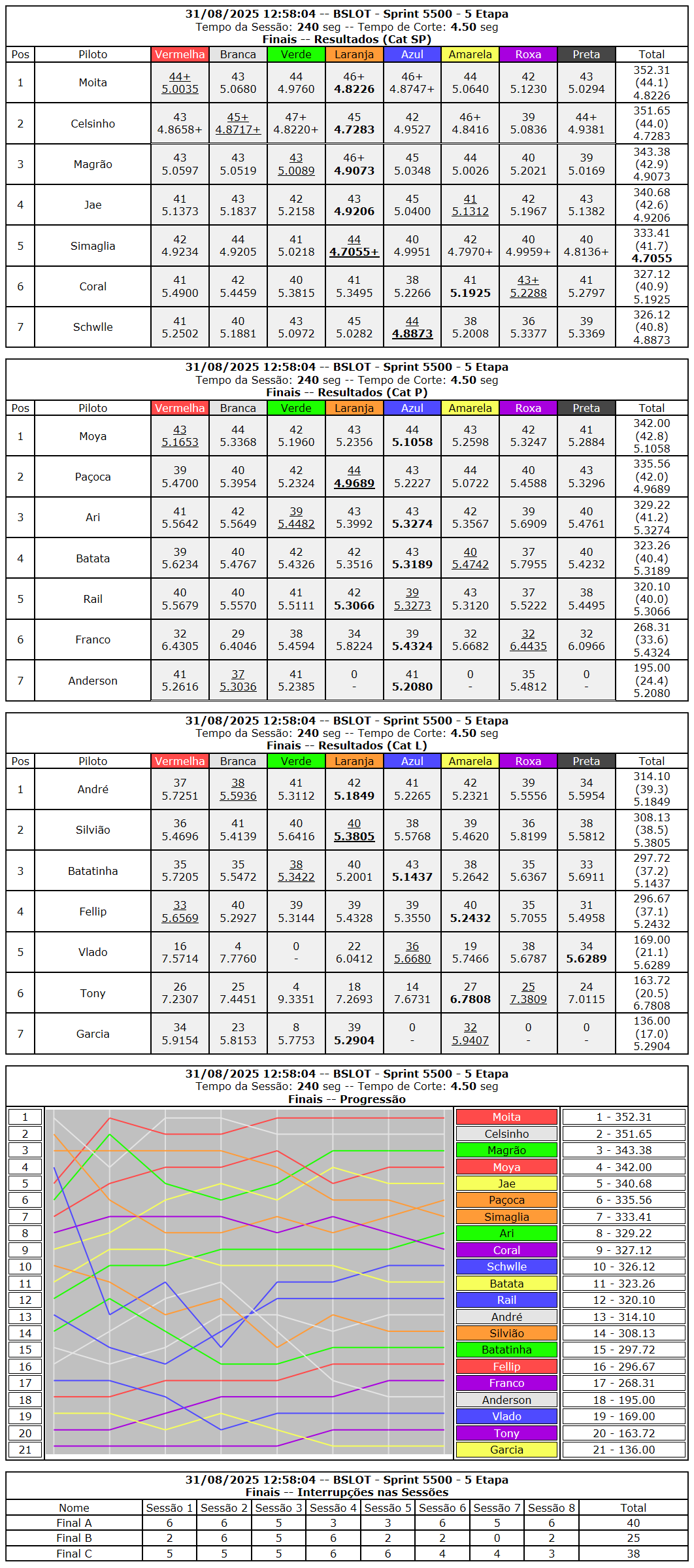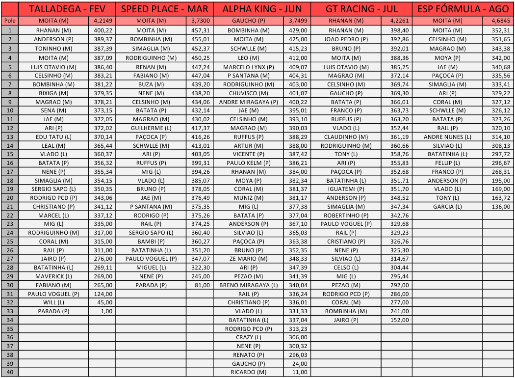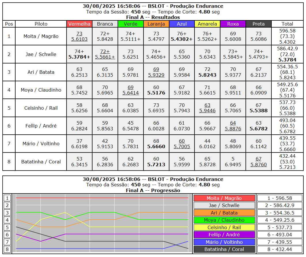 Resumo por carros e pilotos