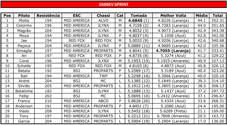 Motor 5500kv B52 original, chassi produção, ESC livre, relação 9 x 34, 35 ou 36 P64 e bolha AUDI RS 5 Red Fox